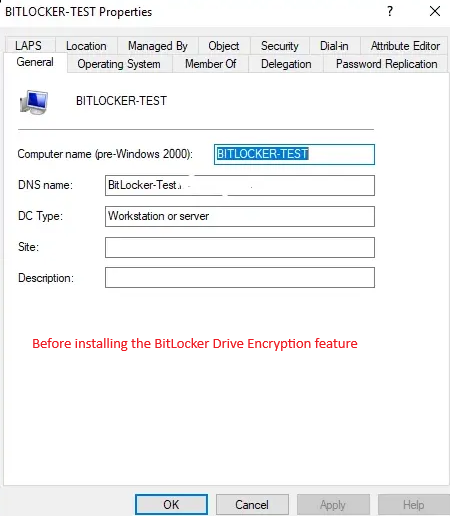 To view and manage BitLocker recovery keys from the computer object in AD, you must install the BitLocker Drive Encryption feature on your domain controller.